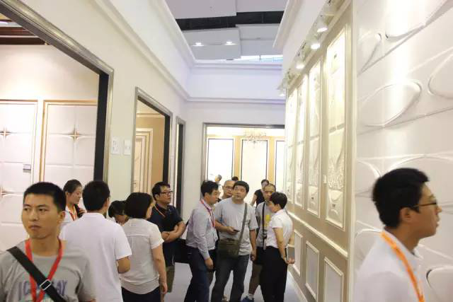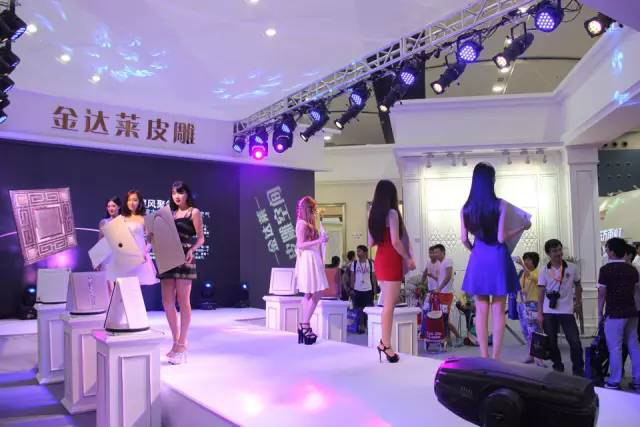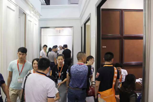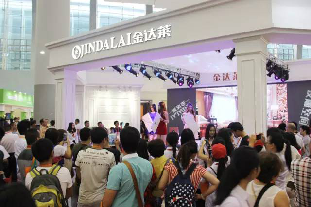 现场,金达莱灵活运用330平方的展厅,设置8个情景间展示,搭配舞台动态模特展示,产生了强大的视觉冲击效果;并通过自己研发的框线,护墙板,扣角等元素的各种巧妙搭配,解决了传统软包中的很多难题,让许多对传统软包失去信心的客户迅速找回了投资热情。可谓门庭若市。