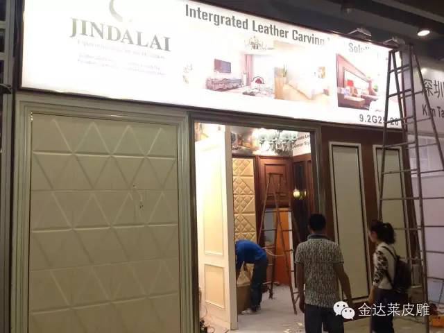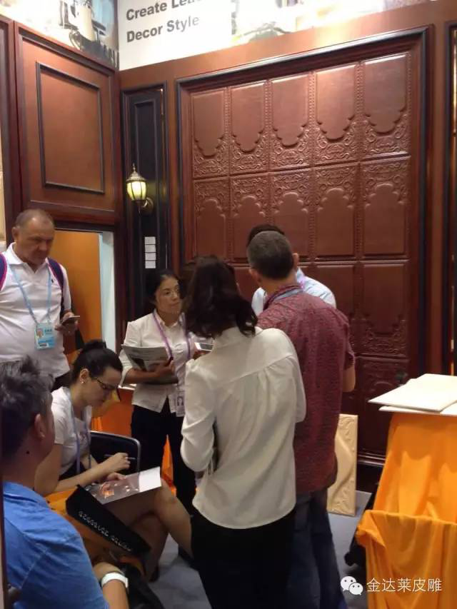 经过4天的紧张布展,金达莱展馆将“整体墙面解决方案专家”体现的很好,皮雕软包、皮护墙板、皮艺框线组合将不同装修风格的情景间展示在人们面前。