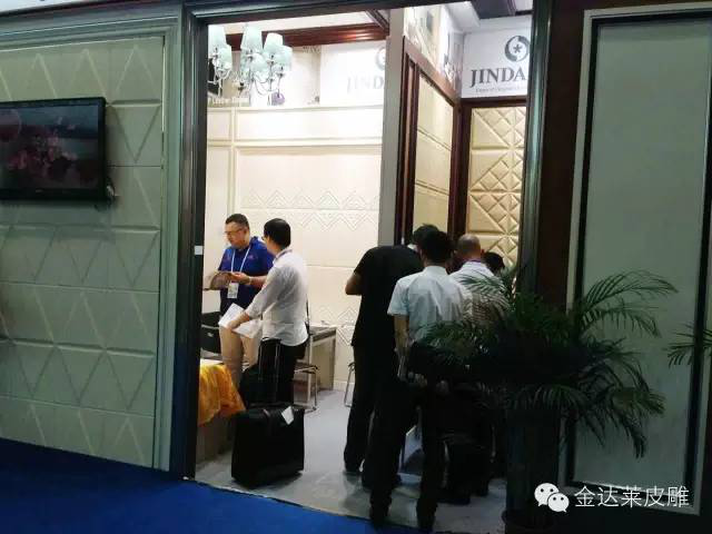 截止到目前为止,展会已经如火如荼的进行了2天。在这两天的时间里,金达莱展馆门前总是门庭若市。从负氧离子皮雕的推出到整体墙面装饰解决方案,我们金达莱有能力也有信心将继续为墙面装饰继续努力。